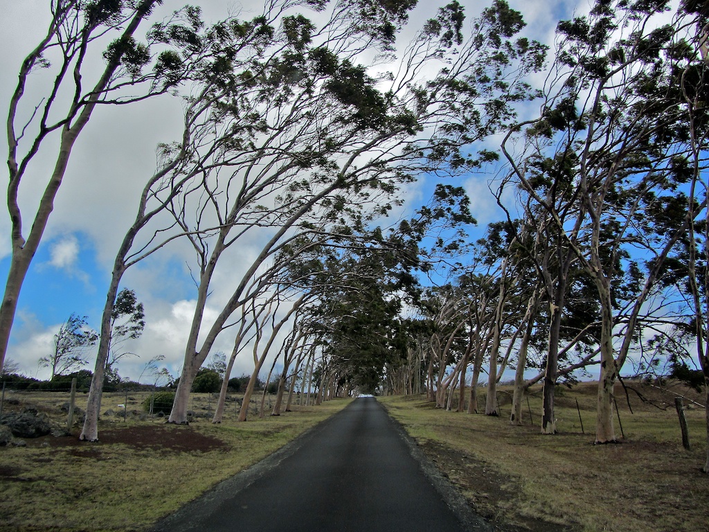 Heute begeben wir uns auf eine kulinarische Reise und Big Island hat in dieser Richtung so einiges zu bieten. Zunächst wollen wir “Parker’s Ranch” besuchen. Kaum zu glauben, dass es sich dabei um eine der größten Ranches in den USA handelt. Obwohl die Ranch so groß ist, haben wir Probleme sie zu finden. Auch auf dieser Insel ist auf unser Navi kein Verlass. Tomtom hat echten Nachholbedarf, was Hawai’i angeht. Was wir nach einiger Zeit entdecken ist das “Parker’s Ranch Center” – ein Einkaufszentrum?! Ganz so falsch sind wir aber nicht, denn dort befindet sich auch der “Parker’s Ranch Broiler”, wo wir geplant haben zu Mittag zu essen. Wo aber bitte ist die Ranch??? In diesem Fall zäumen wir das Pferd von hinten auf und gehen eben Essen. Das “local gras fed beef” in der Form eines Steaks und eines Brisket-Sandwichs mit Kona-Kaffee-Kruste schmeckt ausgezeichnet und die Leute im Broiler sind voll nett, was wir nach unserem “front-office-lady-shock” genießen. Als wir uns nach dem Essen nach der Ranch erkundigen, erfahren wir, dass wir anscheinend die tägliche Tour gerade um eine halbe Stunde versäumt haben. Der Lokalbesitzer rät uns jedoch, trotzdem zum Headquarter zu fahren. Wenn wir Glück haben, würde uns bestimmt jemand herumführen. Gesagt, getan, aber erfolglos. Auf der Ranch herrscht gähnende Leere. Wir sehen nicht einmal Rinder und es ist fast gespenstisch hier. Man kann eben nicht alles haben.