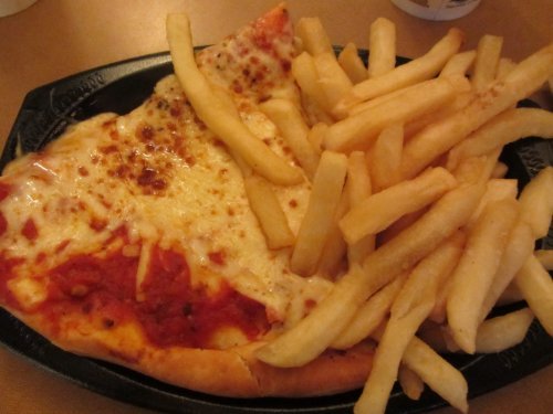 Da uns einige Rückmeldungen erreicht haben, dass Fotos von unserem Essen ausdrücklich erwünscht sind, hier mein Mittagessen, auf das ich auf keinen Fall stolz bin: Käse-Pizza mit Pommes als Beilage. Vegetarisch zumindest