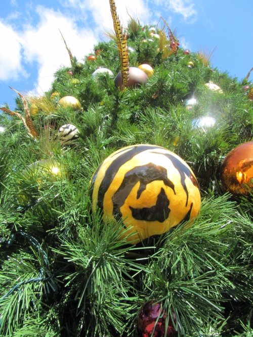 Um Punkt zehn Uhr öffnet Busch Gardens seine Pforten und wir sind mit dabei. Hier nur am oberen rechten Bildrand zu erkennen, der Park ist bereits weihnachtlich dekoriert.
