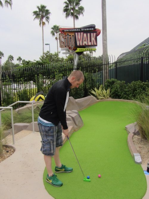 Mit der Posideon Tour und einer Fahrt mit der Cat in the Hat beschließen wir um ca. vier den Island of Adventure-Park. Wir brauchen eine kleine Pause. Wer wirklich glaubt, wir machen einen Pause, kennt den Chris schlecht. Die kleine Auszeit wird für eine Runde Mini-Golf genützt. Und weil es so schön war, gleich für eine zweite. Dass da Chris mich beim Golfen zwei Mal schiach abzockt schmerzt, aber ich werde mich revanchieren.