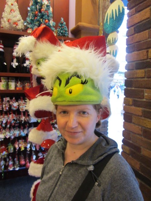 Zwischendurch noch schnell als Grinch verkleidet, so viel Zeit muss sein. Sonst glauben die Leute vielleicht noch, wir hätten den ganzen Tag mit essen verbracht.