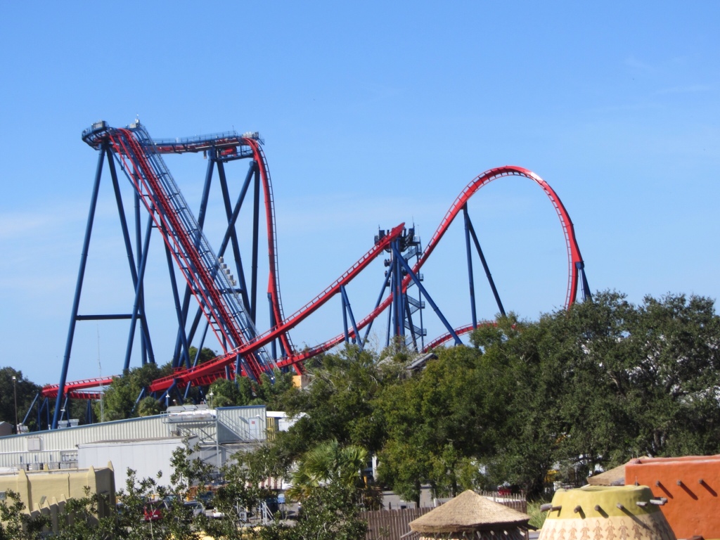Am Abend checken wir im Holiday Inn Express ein, von dem aus wir auch schon die erste Achterbahn von Bush Gardens, dem ersten Vergnügungspark auf unserer Reise, sehen können. Ein Mal schlafen also nur mehr