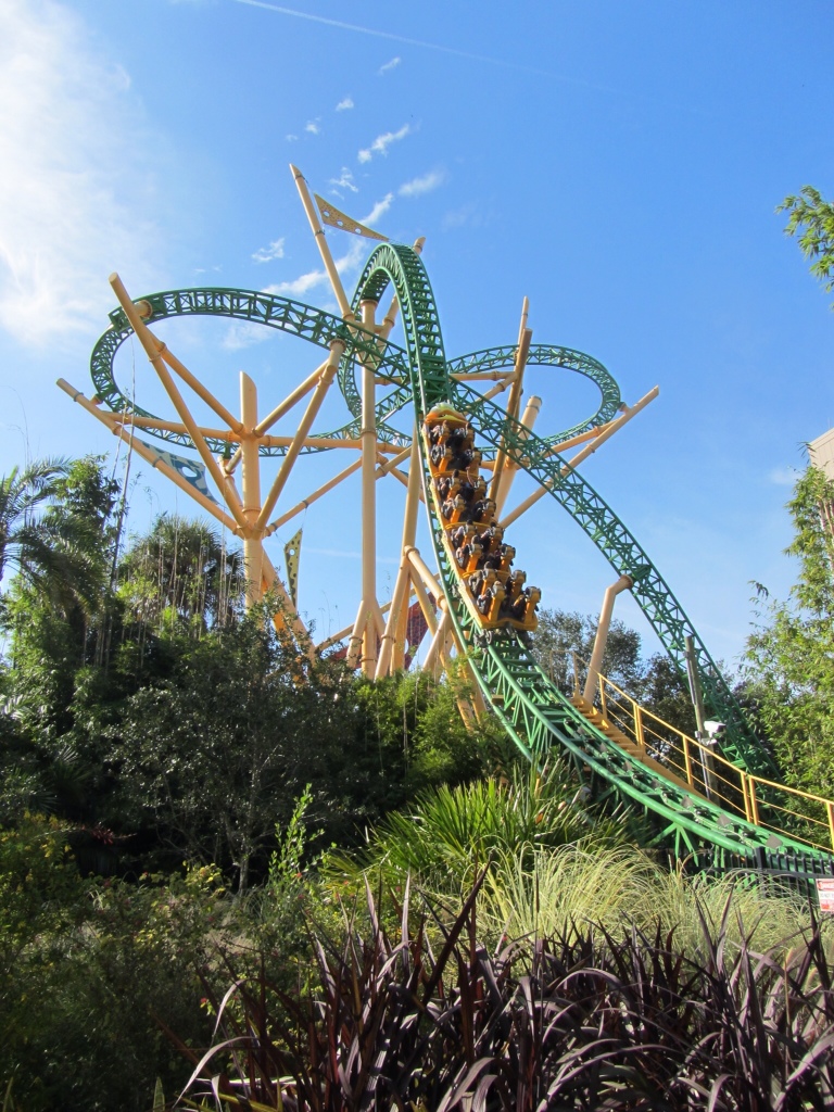 Zum Auftrocken gehts dafür zu unserer absoluten Lieblings-Achterbahn, dem Hulk Coaster.