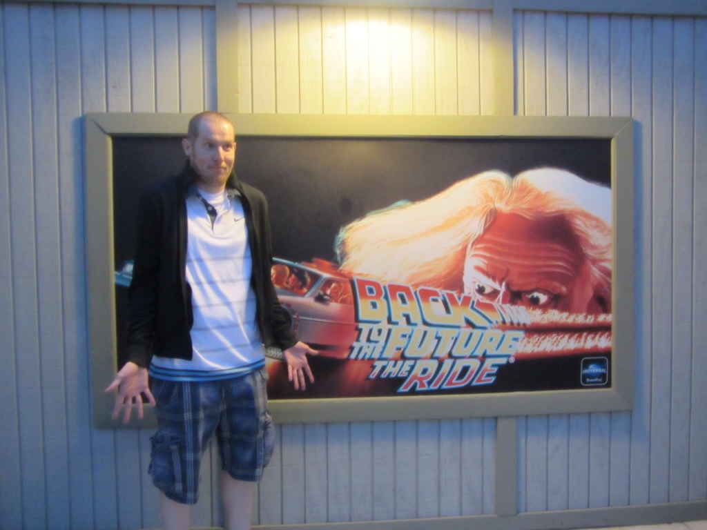 Um ca. fünf Uhr beschließen wir dann, denn wir haben ja ein Zwei-Tages-Park-Hopper-Ticket noch in den Universal Studios Park zu gehen, der gleich daneben ist. Das Ticket will ja genutzt sein, der Park hat schließlich noch bis 19:00 Uhr auf. Wir fahren dann also noch mit E.T., Men in Black, wo da Chris dafür beim Alien-Shooting bluten muss, weil ich ihm, ich will ja nicht angeben, aber es sei der Vollständigkeit halber erwähnt, mit über 40.000 Punkten überlegen bin, und mit dem neuen Transformers Ride. Zum Schluss legen wir noch eine Gedenkminute für den Back to the Future-Ride ein, den es leider nicht mehr gibt.