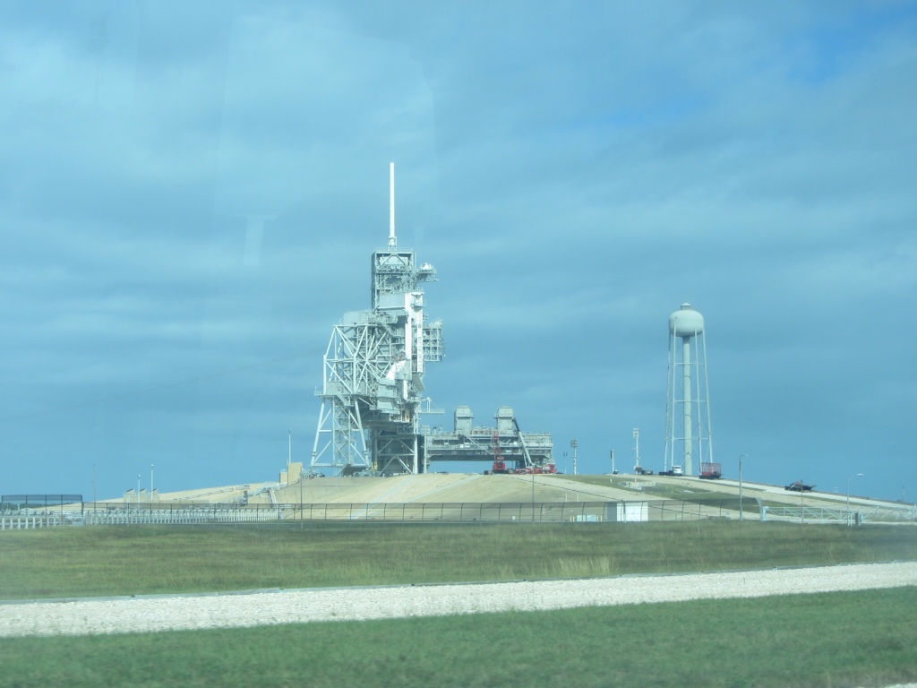 So, ab hier greift der Chris als Souffleur ein. Von dem eben gezeigten Gebäude aus befördert ein sogenannter Crawler die Raketen zur Abschussrampe. Der Crawler benötigt für einen Weg von 75 cm eine Gallone (4 Liter) Treibstoff und es dauert ca. 8 Stunden eine Rakete drei Meilen weit bis zum Abschusspunkt zu transportieren. Hier noch ein Bild von einer der Abschussrampen.