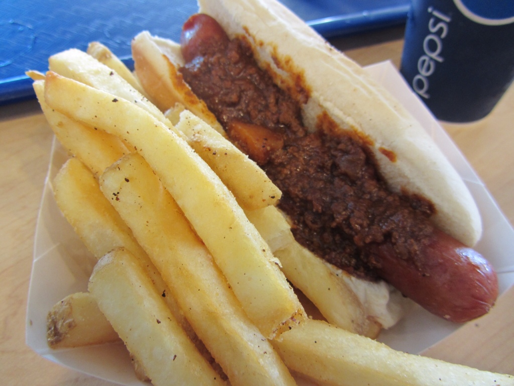 By the way, unser Mittagessen. Es schaut zwar nicht danach aus, aber gem. Zitat Chris, ist das eines der besten Chili Hot Dogs, das wir je gegessen haben.