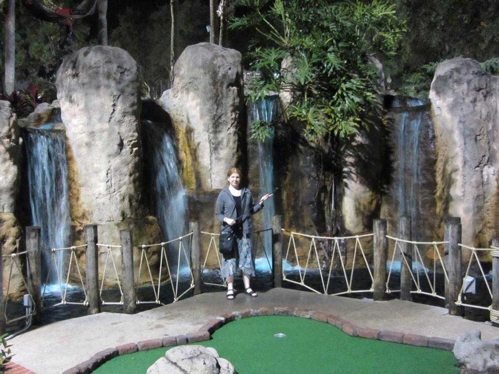 Meine Men-in-Black-Glückssträhne hält an und so konnte ich den Chris das erste Mal im Mini-Golf besiegen. Hier noch ein Schnappschuss, um zu demonstrieren, wie aufwändig der gestaltet ist.