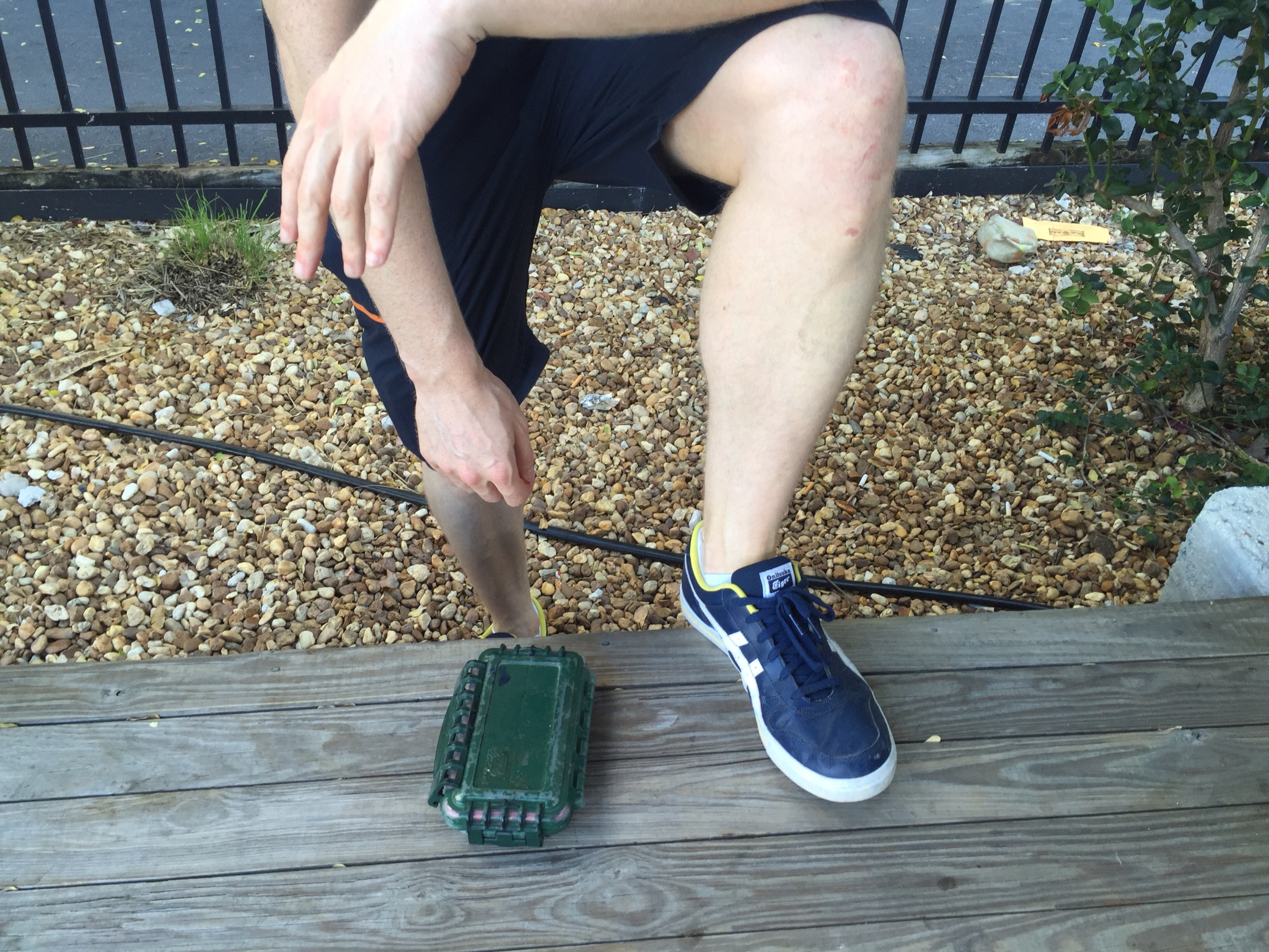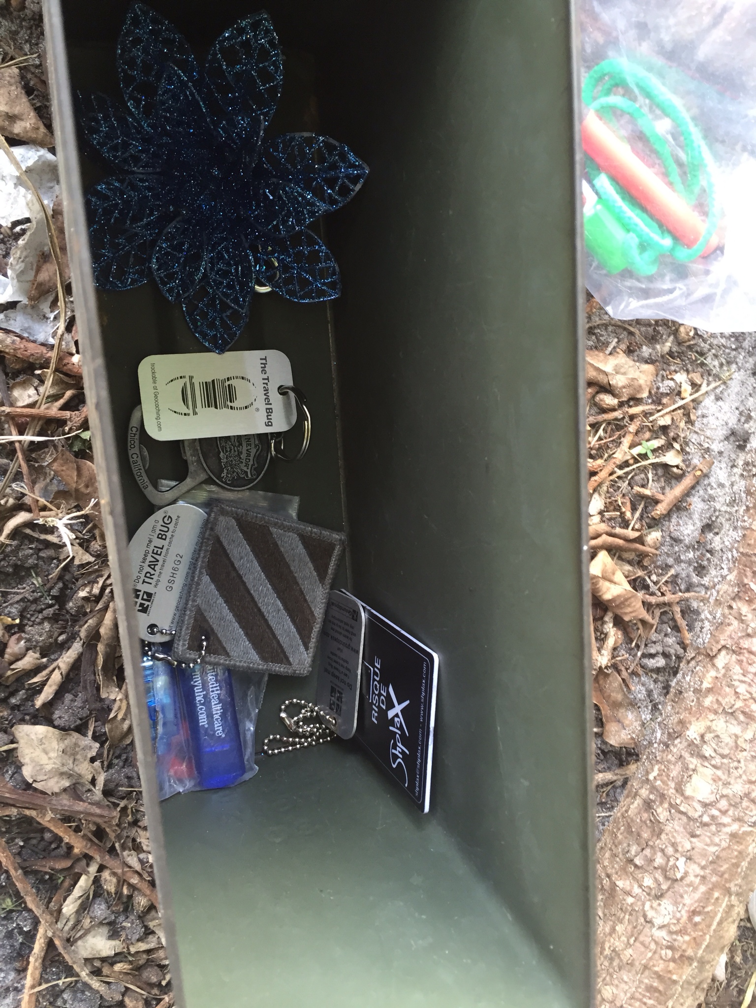 Dieser hat es im wahrsten Sinne des Wortes in sich. Als der Chris den Cache öffnet, springt ihm eine Spinne entgegen. Passt gut zur Schlange, die er heut schon gesehen hat. Aufpassen lautet die Devise!