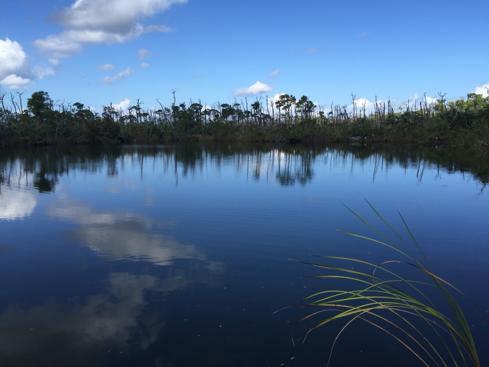 Gestärkt geht es weiter zum Everglades National Park. Kaum zu glauben, aber der Verein hat Geocachen für sich entdeckt und hat, wenn auch leider mit wenig Fantasie, fünf offizielle Caches im Park ausgelegt. Da heute Veteran's Day, also ein Feiertag ist, sparen wir uns den Eintritt und cachen unter dem Motto “Park Employee for a Day” los. Leider nur solange bis Unmegen völlig wahnsinnig gewordener und sich im Blutrausch befindender Mosquitos (das putzige Hörnchen beim zweiten Cache war anscheind nur zur Ablenkung da) auf uns aufmerksam werden. Nicht mal im Auto sind wir von diesen Biestern sicher. Nach kurzem Gefecht schaut unser Sonic aus, als hätten wir eine ganze Halloween Horror Night darin veranstaltet. Ich hoffe, wir müssen keine unangenehmen Fragen beantworten, wenn wir das Auto zurück geben.