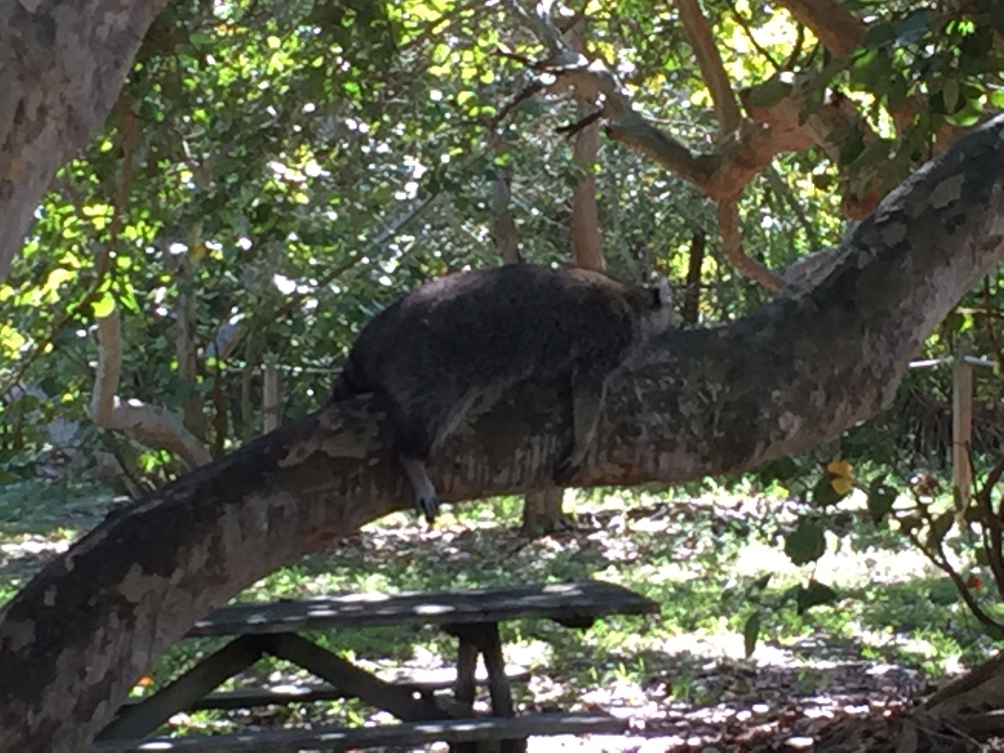 Waaaaa…und ich krieg einen Herzinfarkt und hab ein “Ich-kann-nie-nie-nie-mehr-unter-einem-Baum-durchgehen-Trauma”. Und dabei sagt da Chris immer “…do gibt's nix Wüdes, wir san in Disney!”. Ha, seit heute weiß ich es besser und seine tröstenden Worte “do obn is nix”, die ich heute noch öfters zu hören bekomme, helfen auch nicht viel. Bin noch immer im Gänsehaut-Modos. Voll zach!