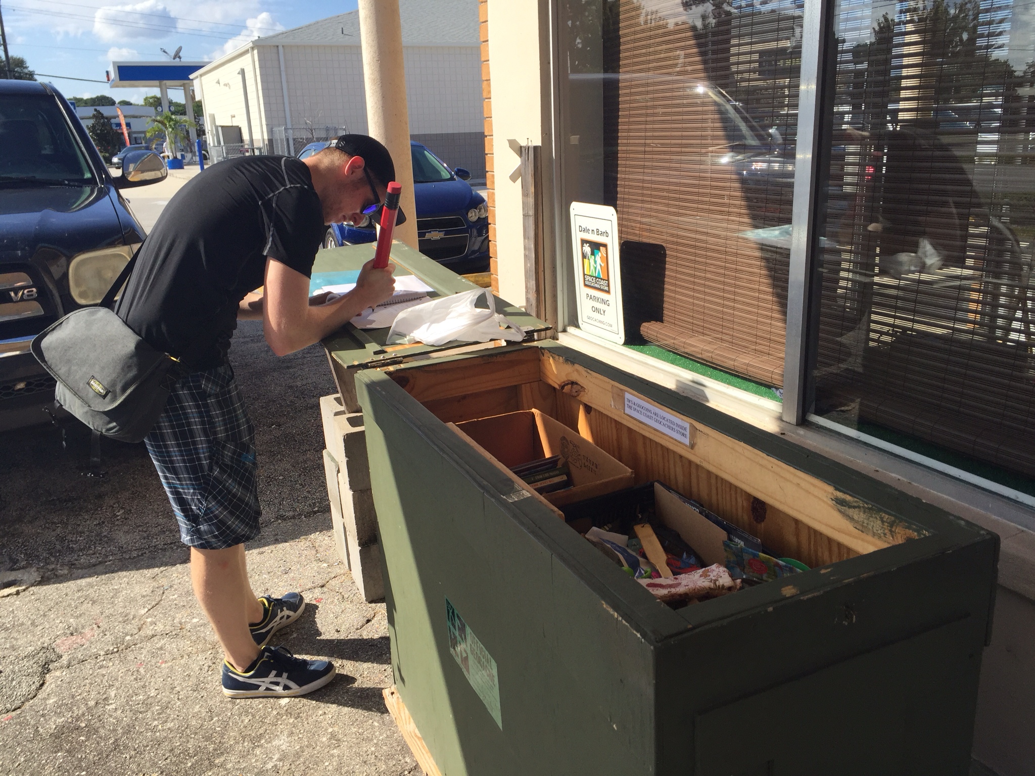 Den ersten von insgesamt vier Caches finden wir gleich um die Ecke unseres Hotels in Miami und es ist, surprise, surprise ein sogenanntes Travel Bug-Hotel. Ein spezieller Cache, der dazu dient seine Travel Bugs auf die Reise zu schicken.
