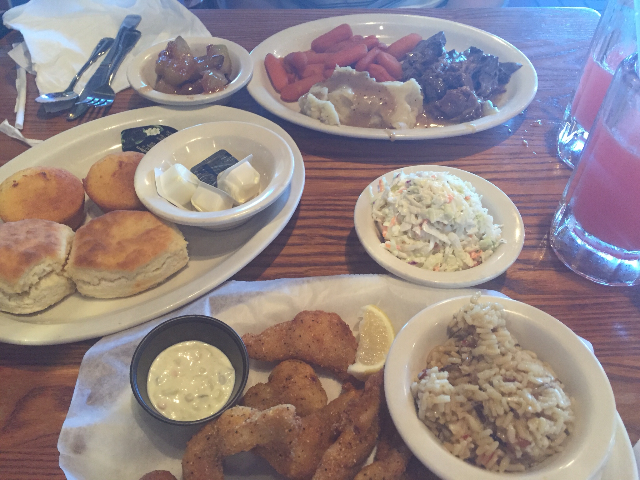 Je näher wir nach Orlando kommen, umso höher wird auch die Cracker Barrel-Dichte und hier ist es auch schon, unser verspätetes Mittagessen, oder frühes Abendessen, oder wie auch immer. Hauptsache Cracker Barrel!